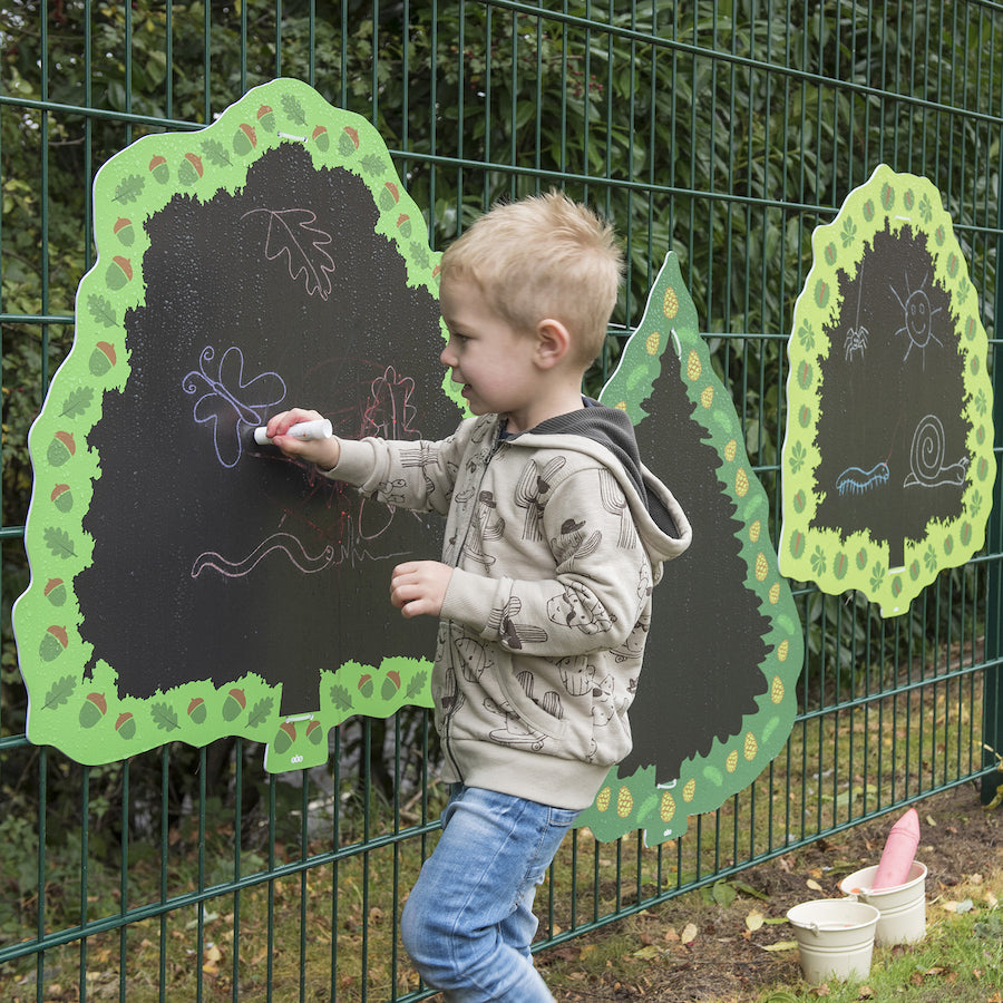 We just love these writable shapes for outdoor fun and play. Children can write and draw when playing outside on dry days. Blackboard paint can be applied in any shape or size.