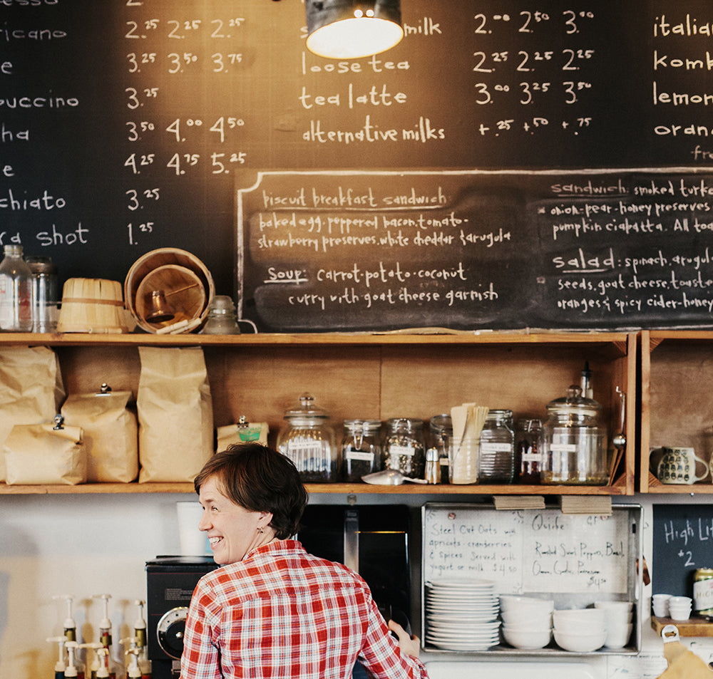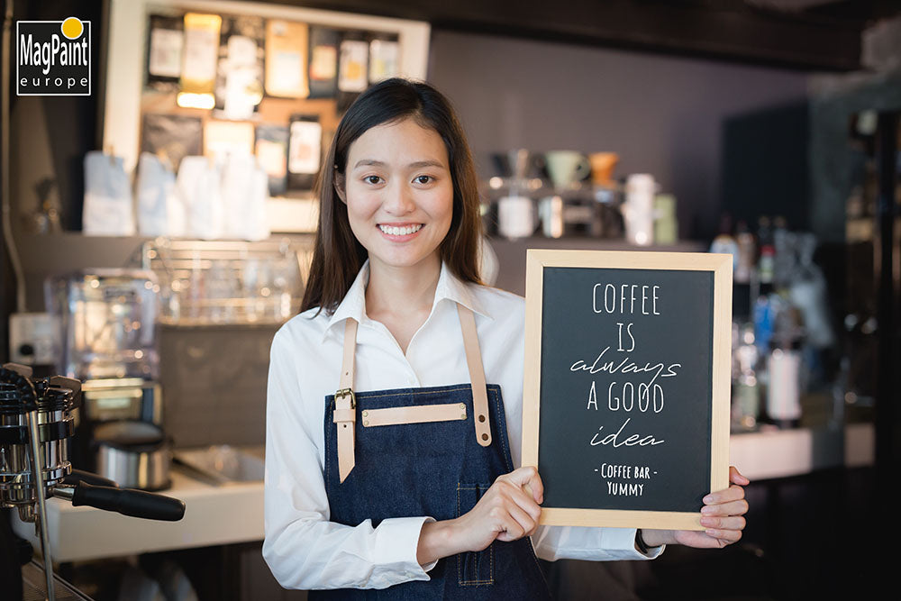 Blackboard paint looks great when installed above the payment counter. You can write up your menu and pricelist, any daily specials and easily rub out and change dishes.