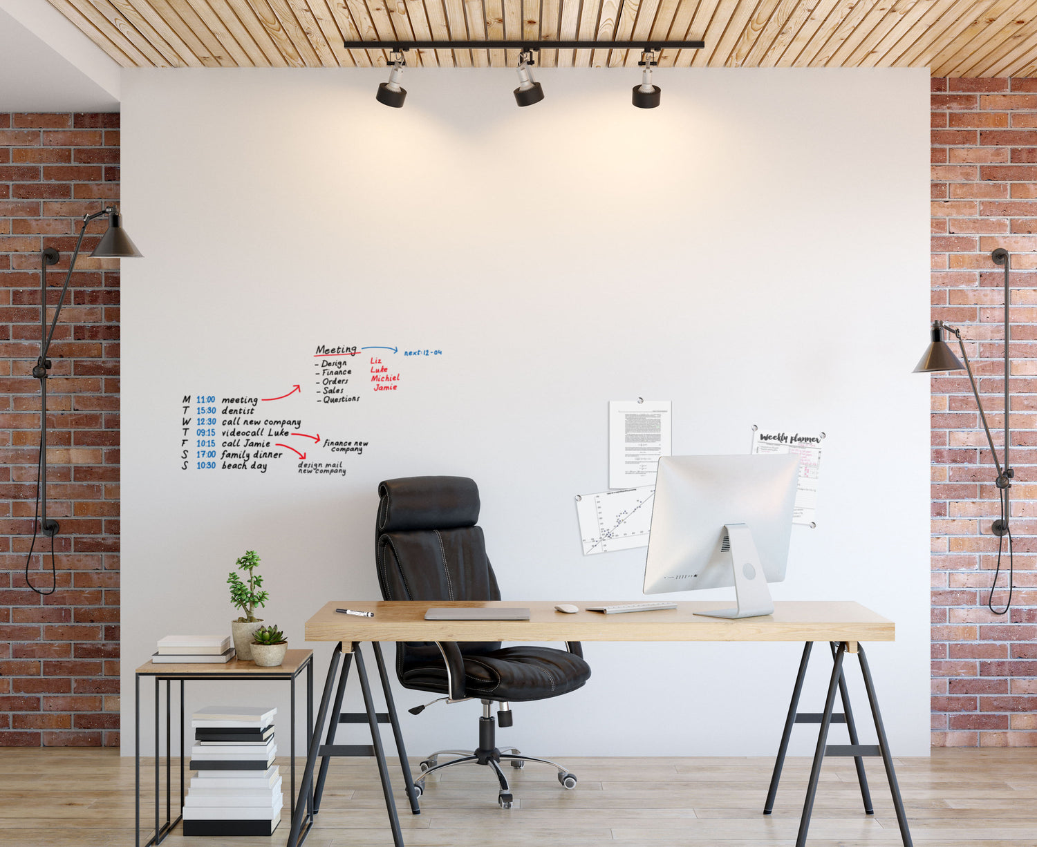 If you are lucky enough to work in a beautiful building and don't want to paint straight onto the walls - no problem. This is a great solution to still acheive full height writable walls without covering brickwork or other original features.