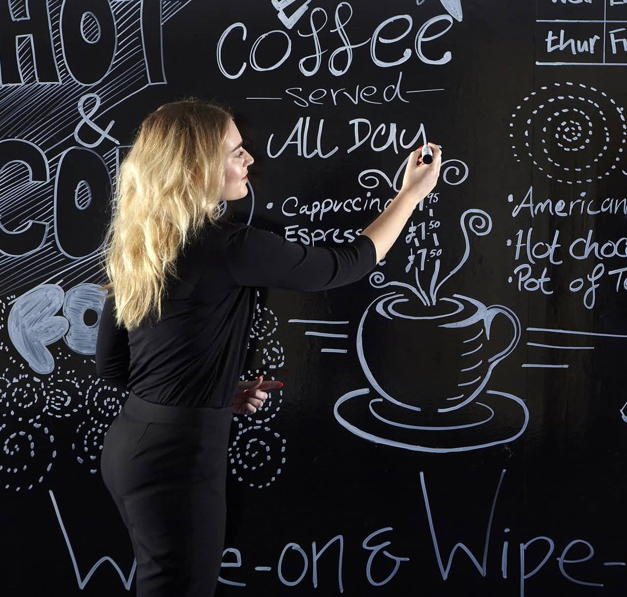 A high-quality, commercial-grade high gloss surface that is available in a choice of white, black or green finish. No need for frames, edges, trims and screws, whiteboard wallpaper can be applied straight onto the wall.