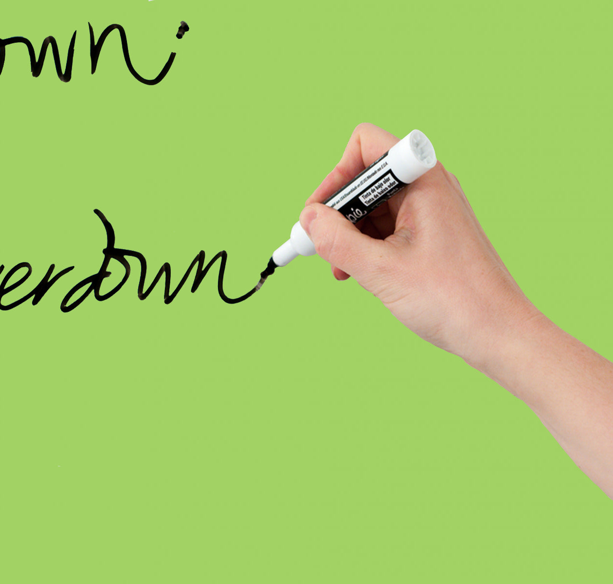 On the white or green surface use whiteboard marker pens, and on the black surface use liquid chalk pens as these are more visible.