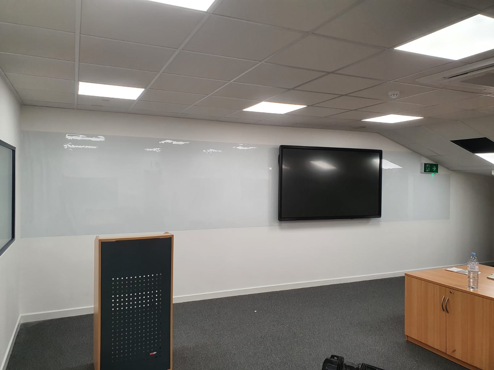Supplied on a roll, and attached to the wall using adhesive, the surface allows you to write on / wipe off like a standard whiteboard, but is easy to install floor to ceiling, or across a room horizontally in one long run.