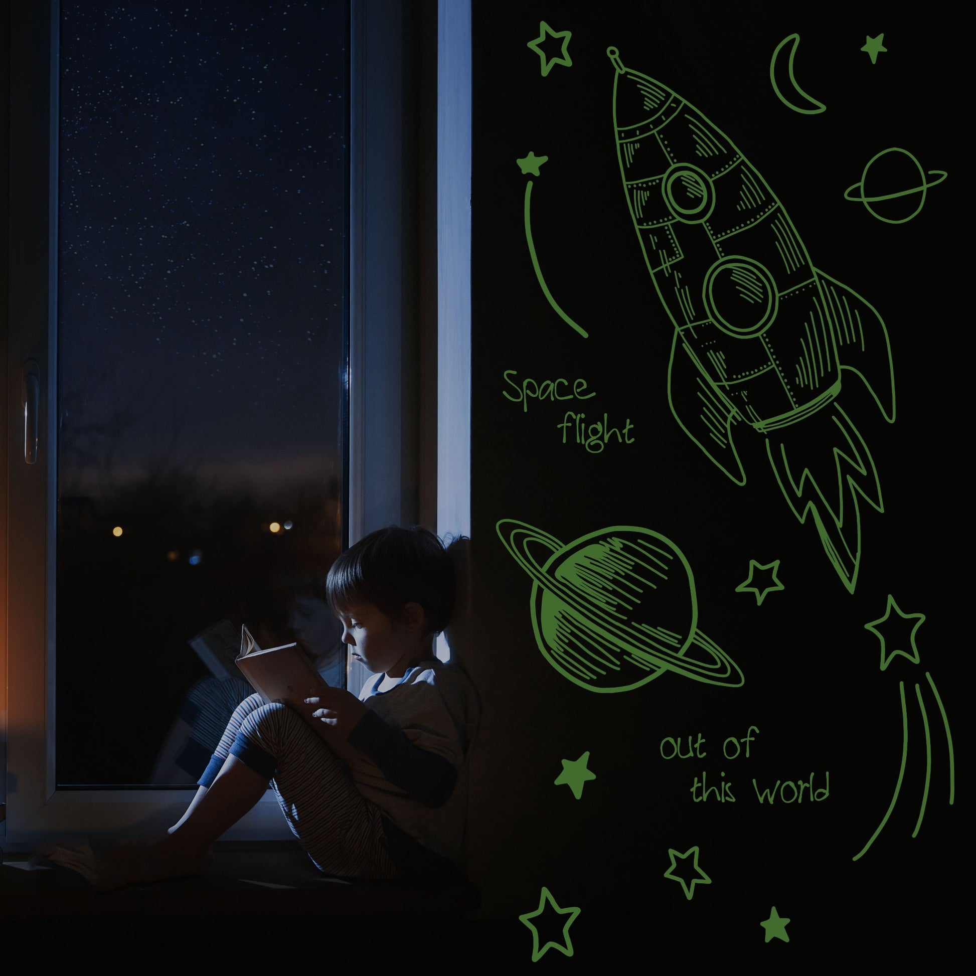 Easily transform a normal children’s bedroom into a magical space station or fairytale paradise. Create your own starry sky, complete with flying saucers and shooting stars. Or make a glowing forest on the walls with fun animals that appear when the light goes out. Create a drawing on the wall and paint over it with GLOWPAINT so that it is also visible in the dark. Or go all out and give your room a complete Halloween makeover. The possibilities are endless.