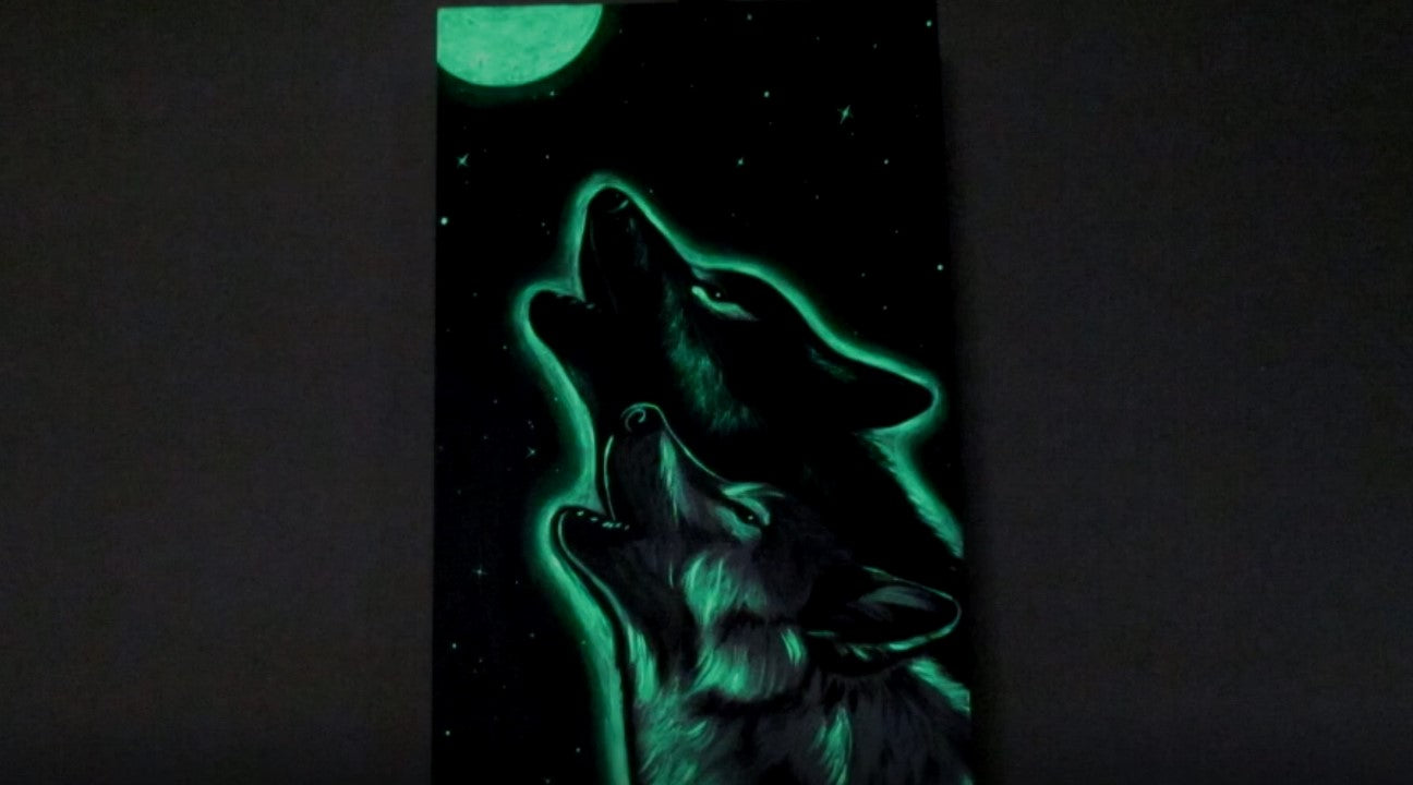 Glow Paint works best on a white background and you can adjust the brightness of GlowPaint yourself. The more layers you stack, the more visible the area will be in the dark.